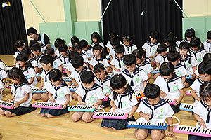 令和7年7月7日。今年は7が3つ揃ったちょっと特別な七夕の日。 クラス毎に使った可愛くておしゃれな短冊を笹に飾って、この日のために練習してきたピアニカやタンバリン・トライアングル・スズ・カスタネットを♪キラキラ星♫の曲に合わせて織姫・彦星に届くようにと演奏しました。 みんなの願いが叶いますように、、、。 |
